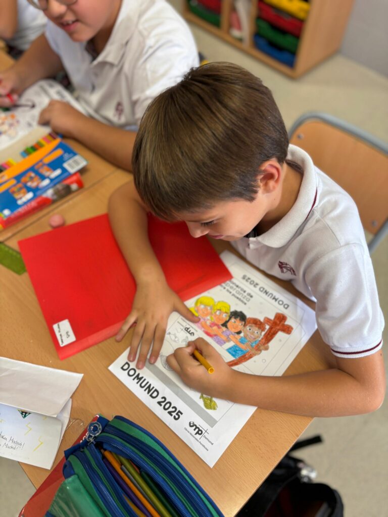 Los alumnos más mayores rezaron un rosario misionero, en el que cada misterio estuvo dedicado a un continente; mientras que los alumnos de Infantil y 1º ciclo de EPO rezaron un misterio del rosario.